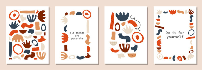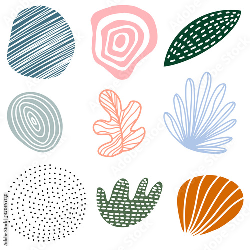 Set Of Trendy Doodle And Abstract Nature Icons On Isolated White Background Big Summer Collection Unusual Organic Shapes In Freehand Matisse Art Style Includes People Floral Art And Texture Bundle Wall Mural Dedraw